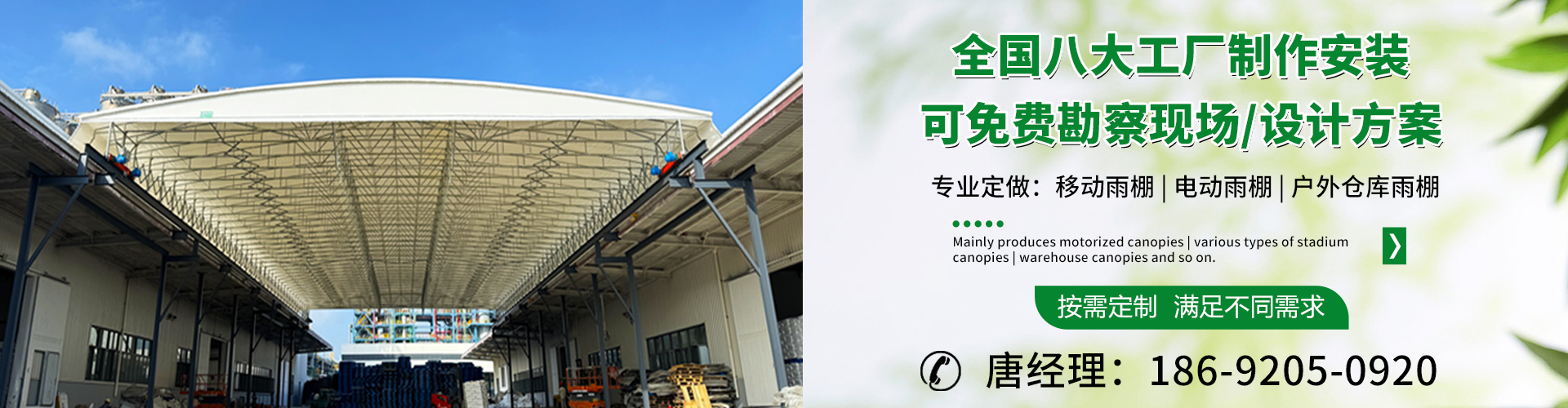 湖南鑫建華鋼結構工程有限公司是一家電動雨棚、膜結構車棚研發(fā),生產銷售,施工安裝于一體的專業(yè)鋼結構科技公司,主要產品有伸縮雨棚,電動雨棚,膜結構車棚等。 湖南地區(qū)職員目前有200多人,自建廠房15600平方米,配備先進的生產流水線,使每件品質產品的堅實基礎。 公司在衡陽,蘇州,天津,濟南,鄭州,江門,佛山,武漢,重慶均設有服務工廠,擁有專業(yè)的技術團隊,配備先進的設備和流水線生產,產能高,貨源充足,發(fā)貨速度快,服務區(qū)域廣。 移動伸縮棚適用于通道臨時倉儲、戶外運動遮陽、污水池遮蓋、能源交通、熱力化工、礦山、船舶制造及市政建設、物流、碼頭等領域的構件制作加工,成品半成品存放、倉庫、野外儀器設備操作用房等。尤其是對工廠發(fā)貨、倉儲臨時遮雨防嗮,梅雨期較長、建設周期較短的工程施工等特別適用。還可根據用戶需求量身定制、適合企業(yè)所需不同款式的產品。 我公司堅持“誠信社會為本,客戶滿意為榮”的經營理念,做到質量把控,嚴格管理,精益求精,恪守承諾。使鑫建華逐步走向成熟,其系統(tǒng)化、專業(yè)化日趨完善。以專業(yè)的技術、科學的管理,更高的產品質量,優(yōu)良的企業(yè)信譽,真誠的客戶服務,靈活多樣的經營方式和務實創(chuàng)新的企業(yè)精神愿與社會各界攜手合作,為推動智能鋼結構建筑事業(yè)的發(fā)展而不斷努力。...